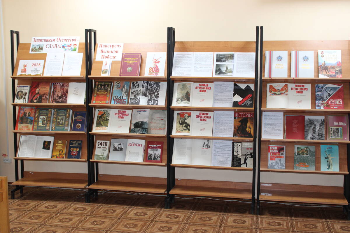Выставка «27 января 1944 года – День полного снятия блокады Ленинграда» начала работать недавно в читальном зале. К одному из выпавших на долю людей в годы Великой Отечественной войны наиболее трагических испытаний приурочена она. Большая выставка «Навстречу великой Победе» также размещена здесь.
