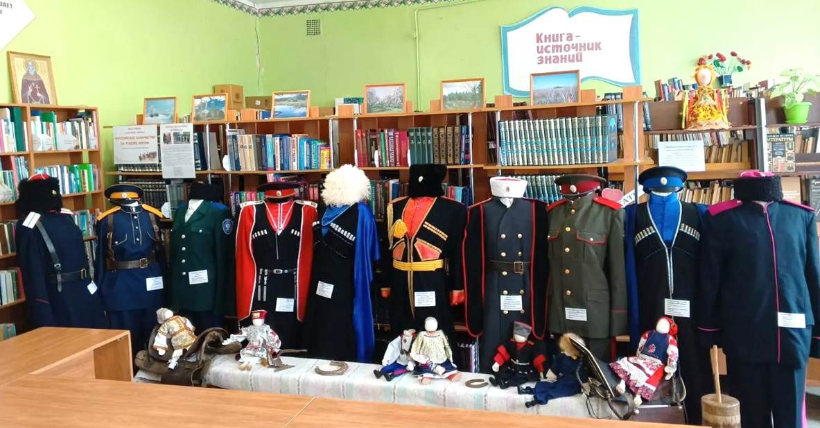 В ходе мероприятия в Центральной библиотеке была открыта выставка казачьей справы «Российское казачество на рубеже веков», приуроченная к году защитника Отечества. Это авторская коллекция М.В. Бирюковой. В экспозиции представлено около двадцати предметов из авторской коллекции Марины Валерьевны. На выставке можно увидеть военную форму донского казака, его снаряжение, бытовую утварь, различные варианты женских и мужских головных уборов, обувь и тряпичные куклы в традиционных казачьих нарядах. Самый яркий и уникальный экспонат — казачья справа, форма старого образца. Знакомство с экспонатами позволит посетителям лучше узнать казачьи традиции и их культуру, ведь казачество играло особую роль в героической истории России.