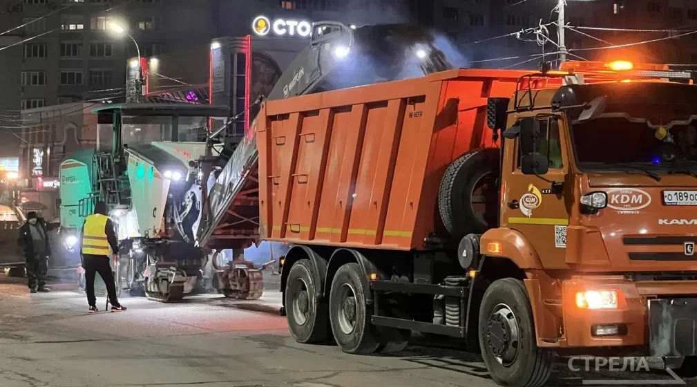 И в ночную смену работают дорожники. Как сообщает РИА «Стрела», в Советском районе на ...
