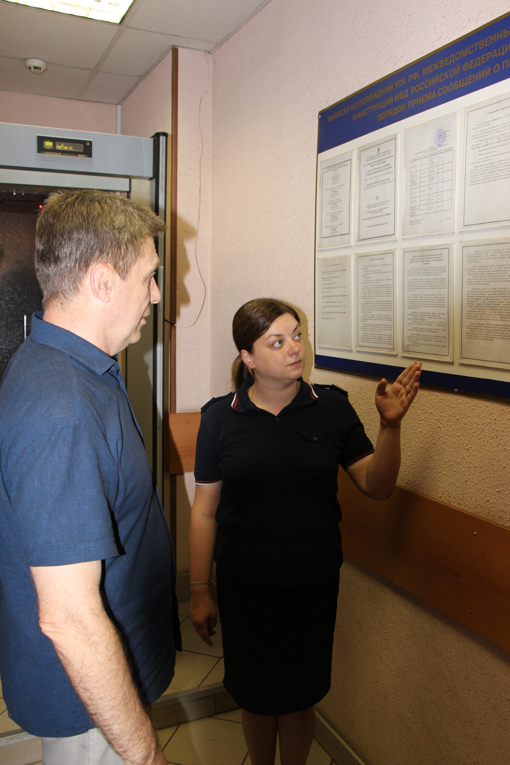 Он оценил полноту и актуальность оформления информационных стендов для граждан, расположенных при входе в помещение, проверил наличие образцов заявлений для граждан, информации о руководящем составе отдела, телефоне доверия, а также ознакомился с рекомендациями для граждан по профилактике кибермошенничества.