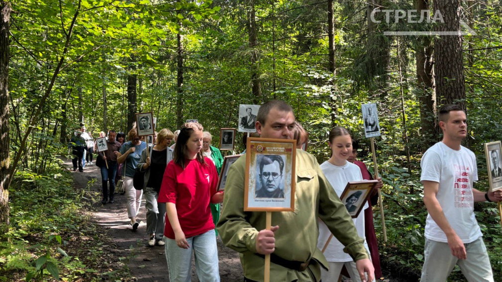 С «журналистского бессмертного полка» начался старт акции. С портретами военкоров по лесной тропе до Поляны журналистов прошли участники, где состоялось торжественное мероприятие.