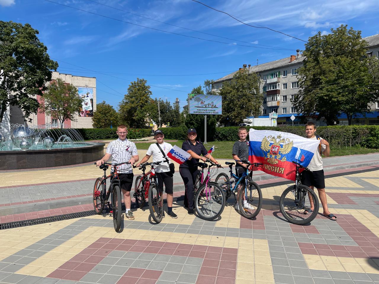 В начале мероприятия инспектор рассказала ребятам об истории возникновения и значении государственных символов России — гербе, гимне, флаге. Перед стартом ребята прикрепили к велосипедам российский триколор и во время движения по улицам города флаги развевались на ветру и создавали праздничное настроение у всех участников патриотической акции и прохожих, которые радостно приветствовали велосипедистов.