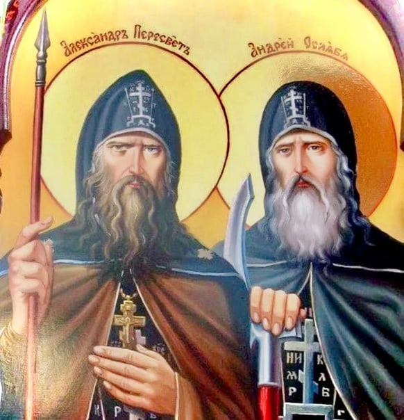 Согласно житию преподобного Сергия Радонежского, перед Куликовской битвой князь Дмитрий Донской в поисках духовной поддержки отправился к нему в монастырь за благословением. Благословение такого человека должно было вселить надежды во всех воинов. Великий князь попросил: ”Дай мне из своего полка двух воинов, Александра Пересвета и брата его Андрея Ослебя, и ты с нами вместе поборешься”. И преподобный Сергий, словно ожидал от князя именно эту просьбу, не задумываясь, сразу, же исполнил её, повелев Пересвету и Ослябяти изготовляться на дело ратное. Перед тем как отпустить иноков с князем, преподобный Сергий постриг обоих братьев в Великую схиму (чин ангелов) и сказал им на прощанье: «Мир вам, братья мои! Твёрдо сражайтесь как славные воины за веру Христову и за всё православное христианство с погаными». Братья были немолоды, но сильные, зрелые и умудренные духовно и в воинском искусстве. Известна была эта двоица как великие и знаменитые наездники в ратные времена. Воины-монахи стали для русских воинов залогом справедливости их будущей битвы.