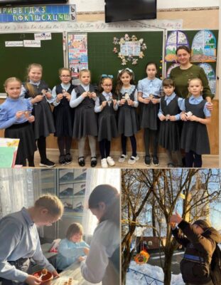 Защитникам СВО ученики выразили свою солидарность, написали письма поддержки, изготовили обереги и почтили память погибших минутой молчания. Встреча с волонтерами стала для второклассников познавательным событием, пробудив живой интерес к добровольческой деятельности и подарив позитивные впечатления. Третьеклассники проявили чуткость и творческий подход, создав трогательные открытки к 23 февраля. В День природы школьники продемонстрировали свою заботу о братьях наших меньших, развесив кормушки для птиц и показав ответственность перед природой.