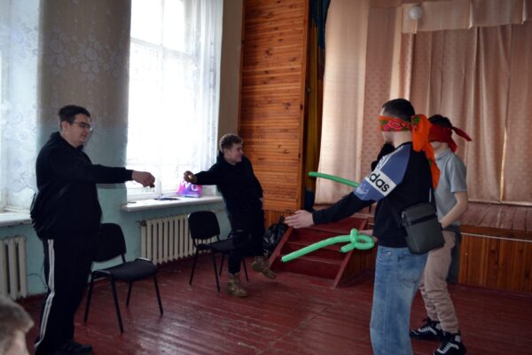 Заведующая сектором туризма и внестационарного обслуживания Марина Бородина подготовила для студентов конкурсно-игровую программу «Ловкие ребята». Участники состязались в интеллектуальных заданиях, а также демонстрировали свою ловкость и скорость.