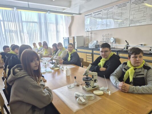Его провела кандидат сельскохозяйственных наук, доцент кафедры агрономии, селекции и семеноводства агрономического института Брянского государственного аграрного университета Наталья Витальевна Милехина. Ребята научились готовить микробиологические препараты для изучения их под микроскопом и изучили технику окрашивания микропрепаратов фуксином.